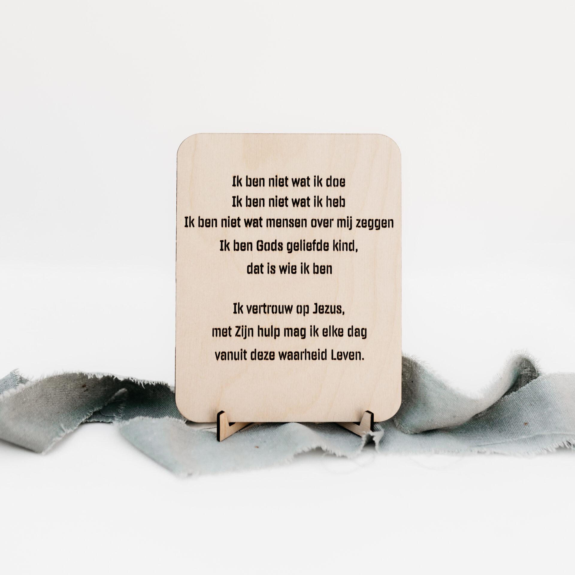Op een kaartje van hout om iemand te bemoedigen of voor jezelf als dagelijkse reminder.