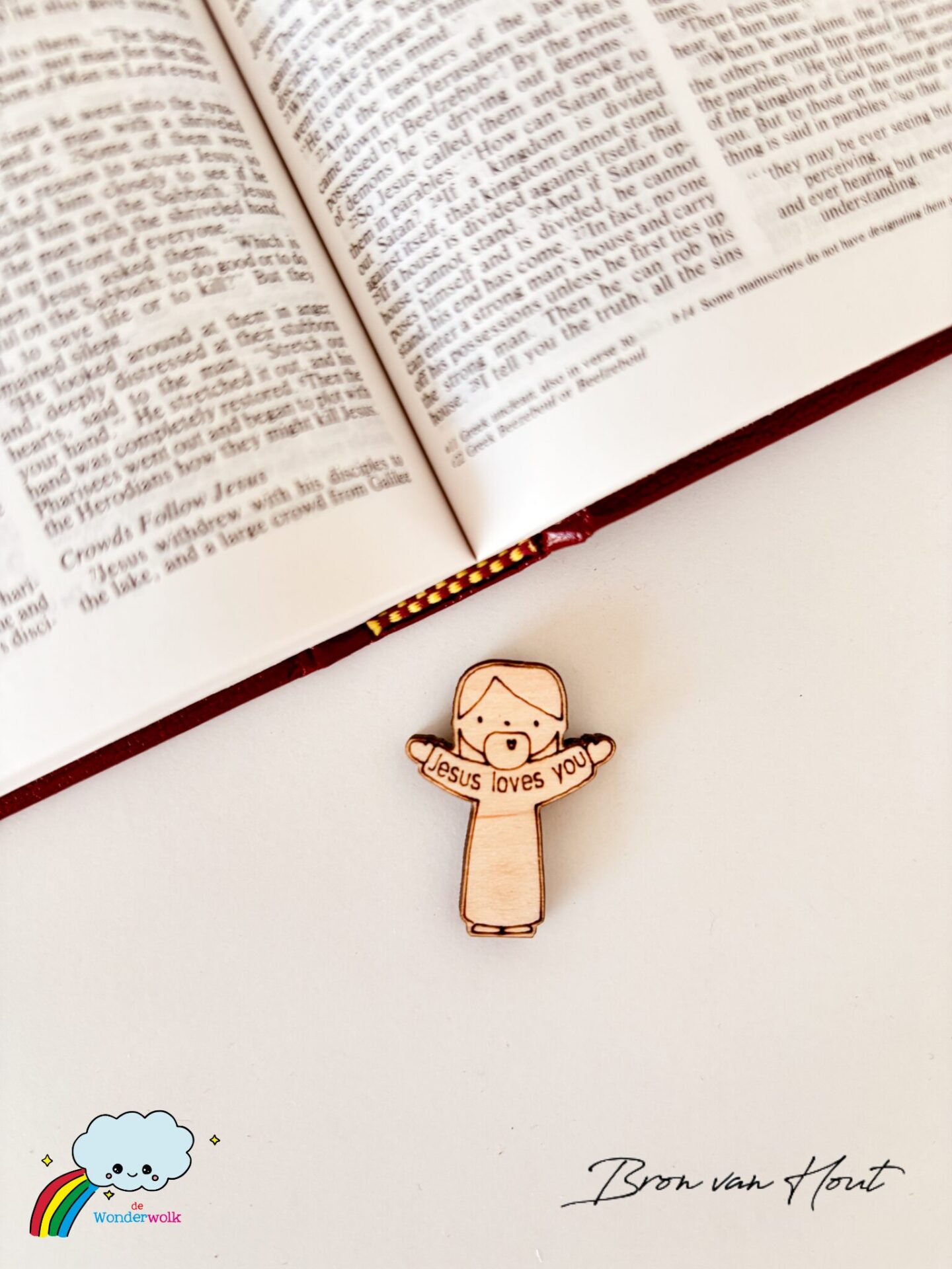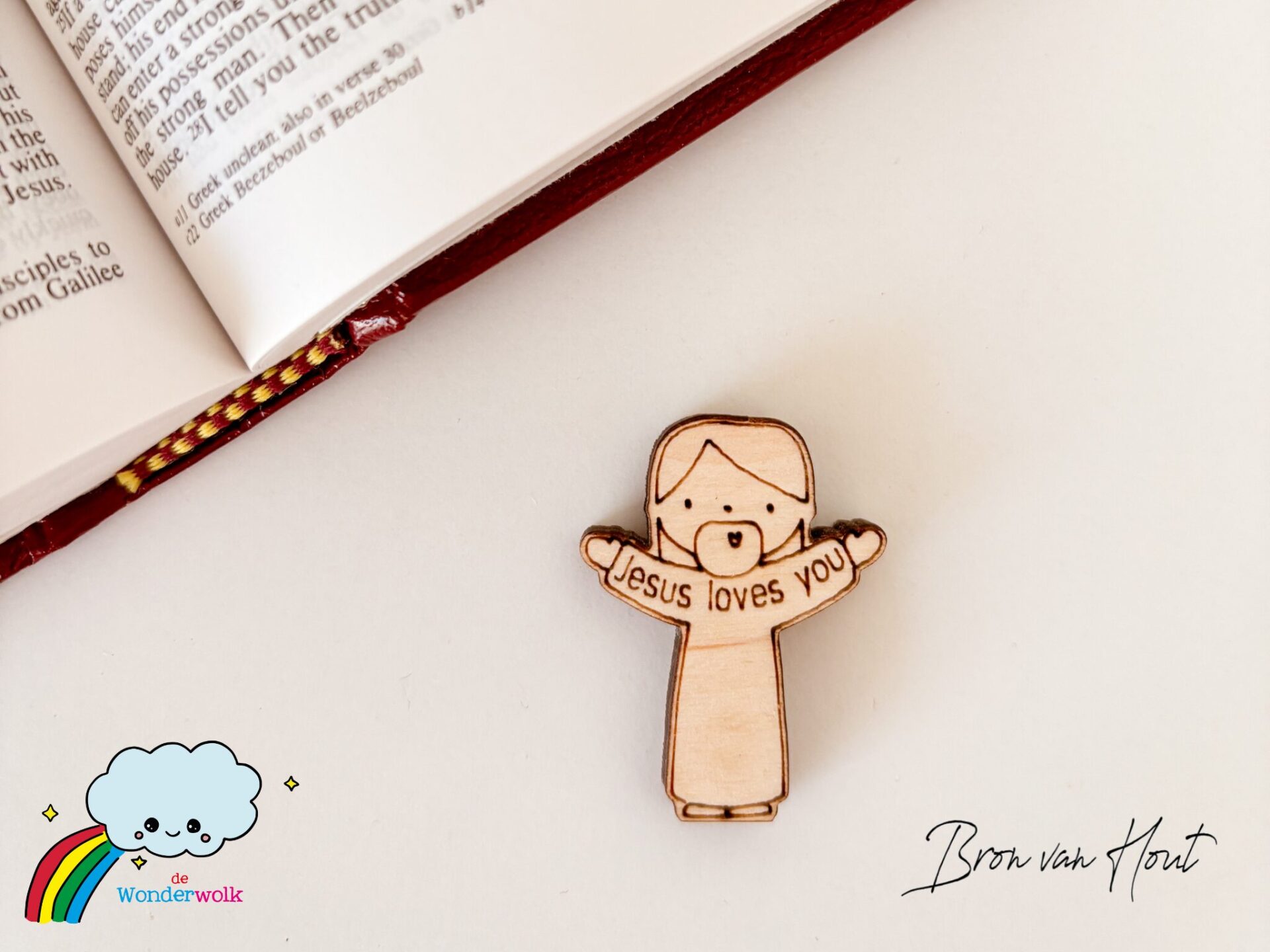 Deze houten mini-Jezus is een tastbare reminder van Gods liefde.