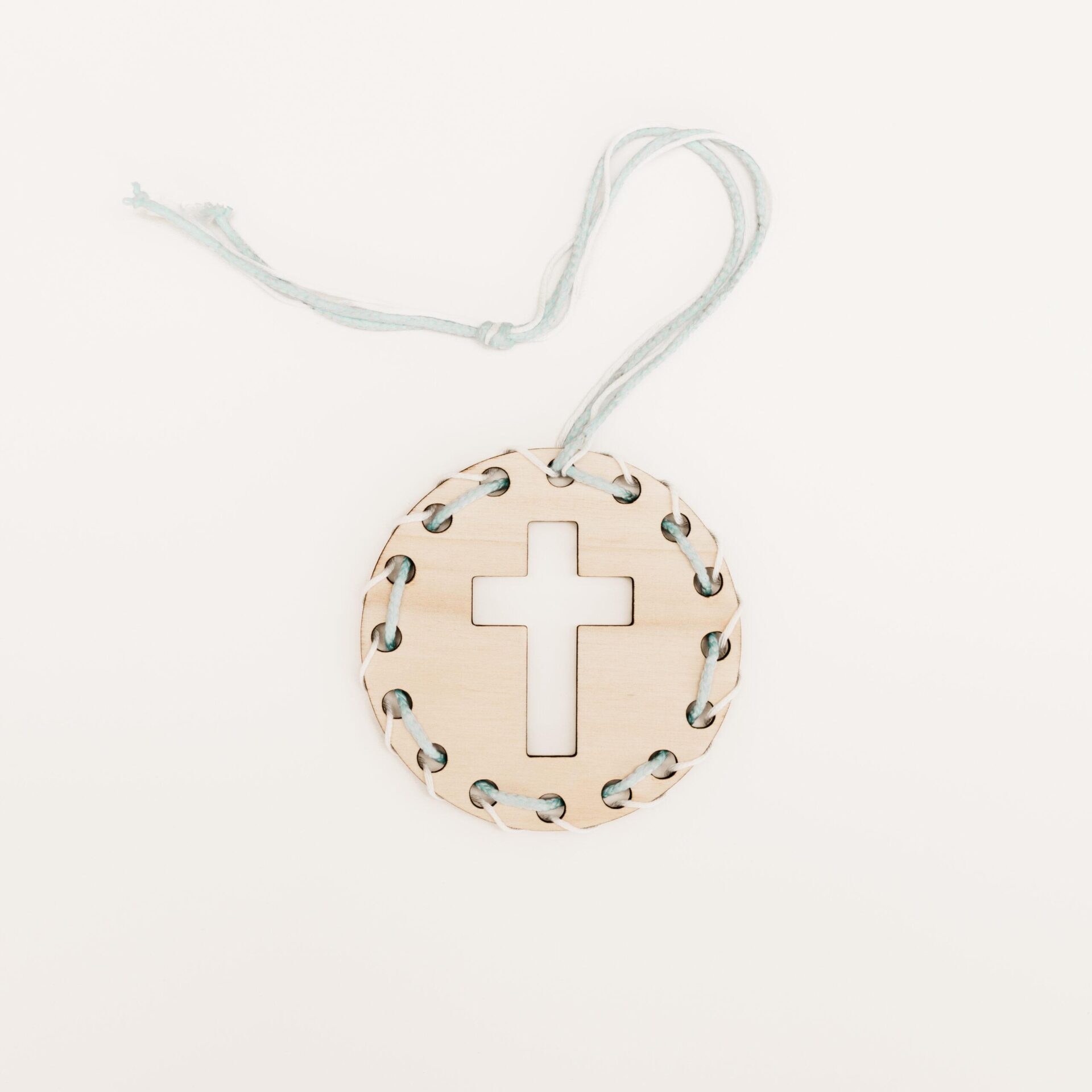 Versier dit knutsel kruisje met wol, lintjes, touw, stickers, verf, stiften etc. Hang hem daarna op in huis of de auto.