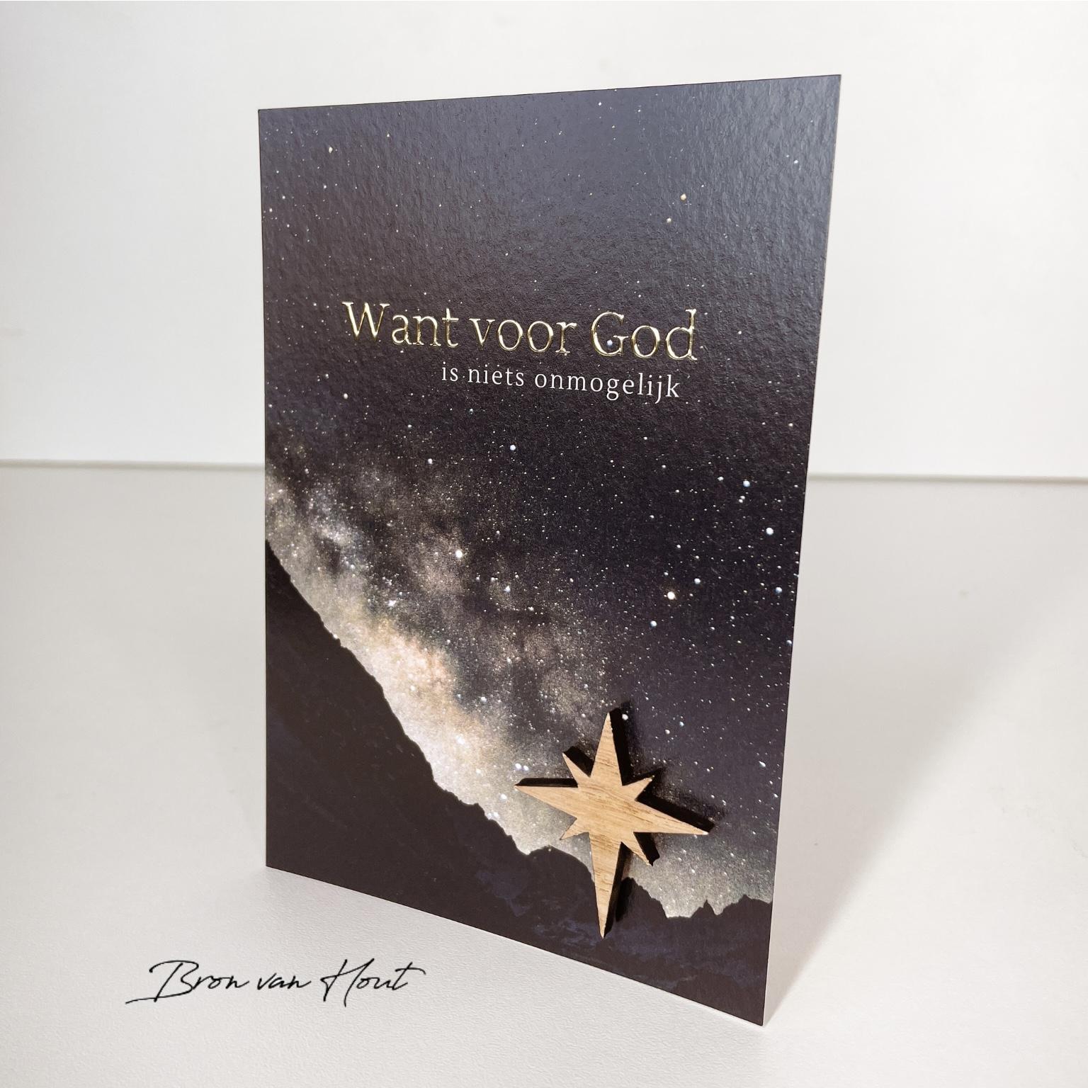 Deze kleine kaartenstandaard bestaat uit een ster van eiken/mdf en een eikenblokje met een magneetje. Hiertussen kan je een kaart plaatsen waardoor deze blijft staan. Geschikt tot en met kaart formaat A6.