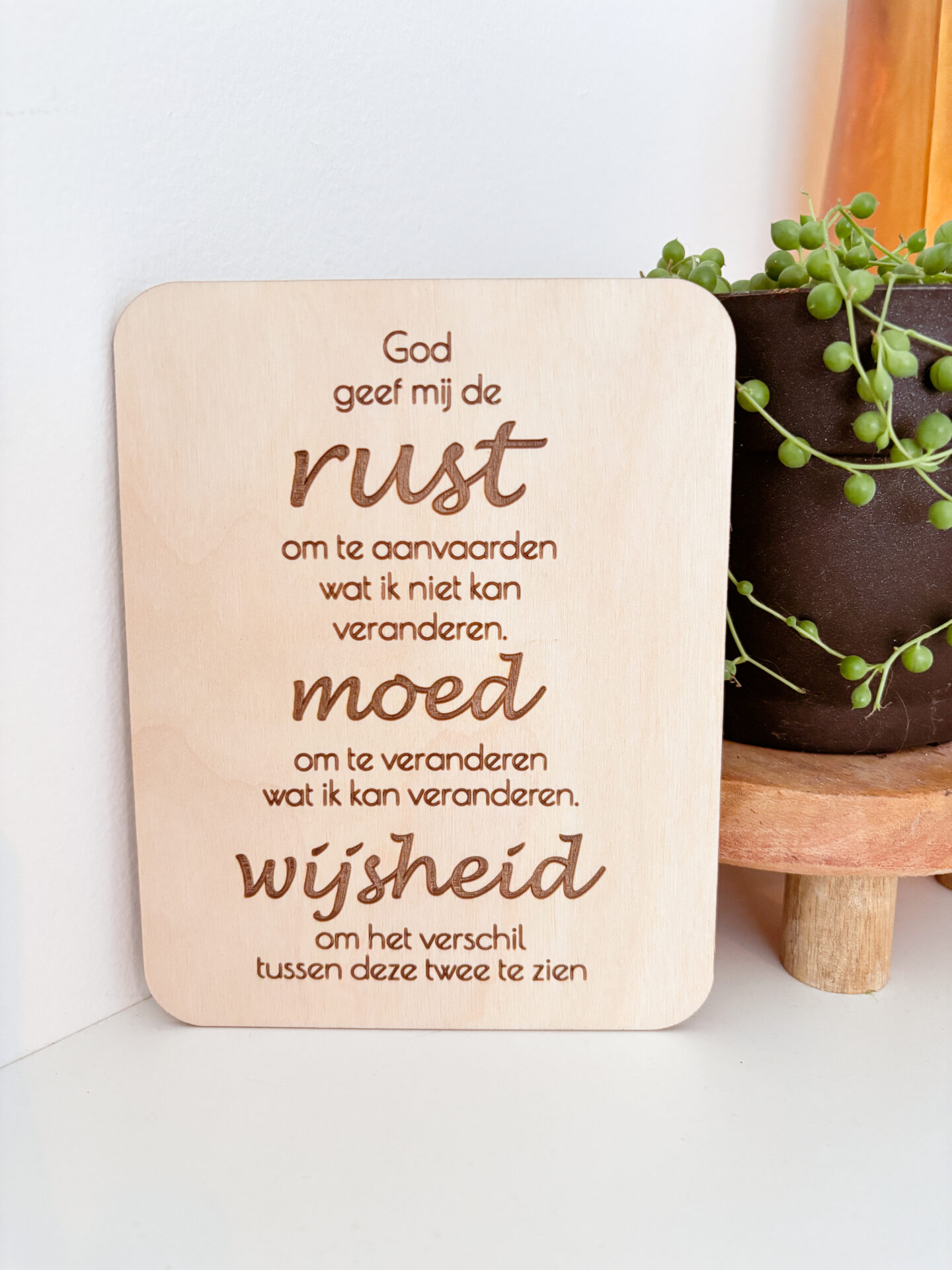 Op een kaartje van hout om iemand te bemoedigen of voor jezelf als dagelijkse reminder.
