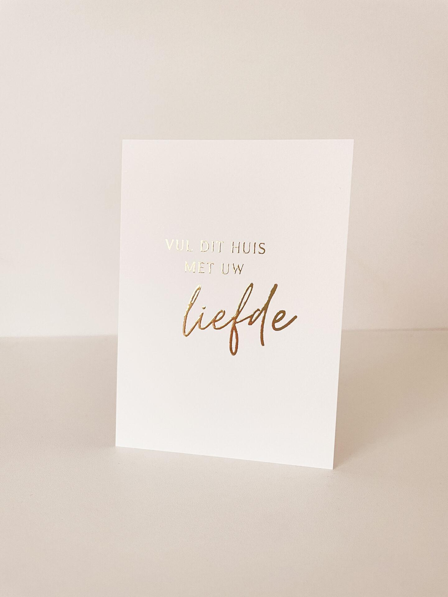 Deze kaart met goudfolie van Kleinlichtje is gedrukt op 300 grams Tintoretto Gesso papier: een papiersoort met een mooie structuur.